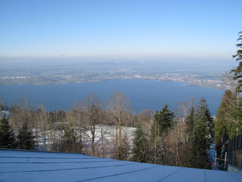 A day after Christmas, my best friend, her husband, and their toddler took me to see snow in Zugerberg, about 60 km south-east of Brugg. On the way there, we stopped at Lake Zug. It was a sunny day, not as gloomy as the previous days.