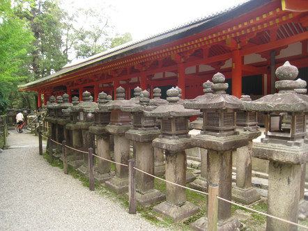 We continued to cycle, passed Tsubomiwa Shrine and the deers before finally arrived at Kasuga-taisha, a Shinto shrine. The interior is famous for its many bronze lanterns, as well as the many stone lanterns that lead up the shrine. Kasuga Shrine, and the Kasugayama Primeval Forest near it, are registered as a UNESCO World Heritage Site as part of the "Historic Monuments of Ancient Nara".